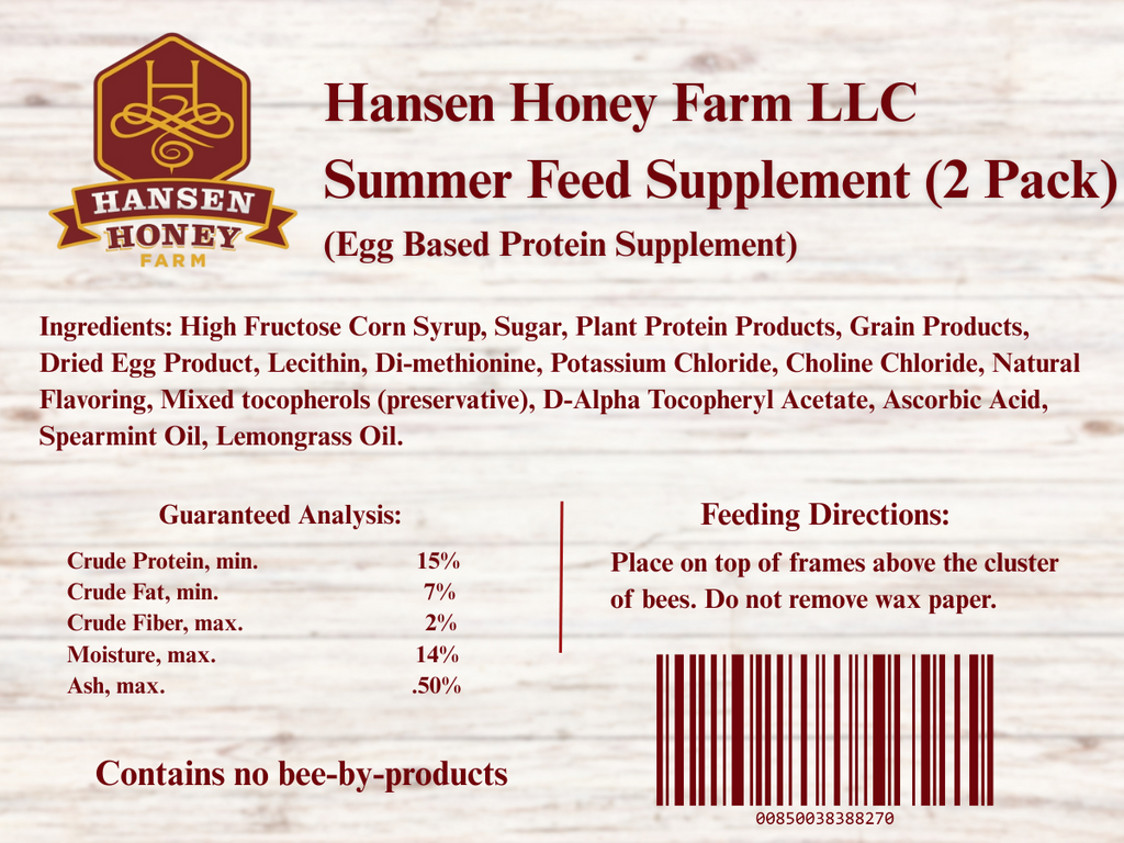 Feeding Directions: Place patty on top of frames above the cluster of bees. Do not remove wax paper.